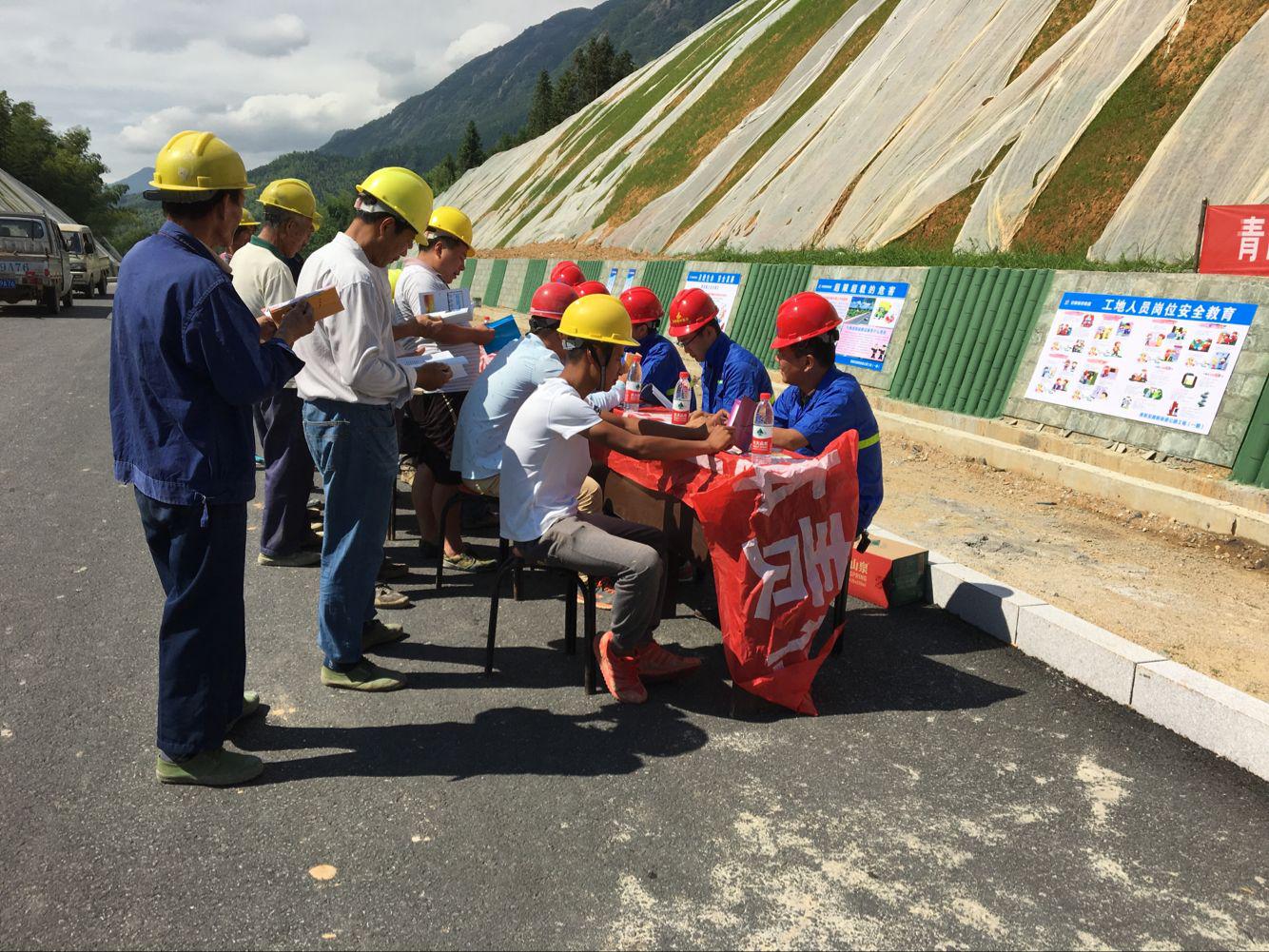 蕪合高速公路改擴建三標發(fā)放安全宣傳資料,強化一線工人安全意識,解答一線工人提出的有關安全問題。