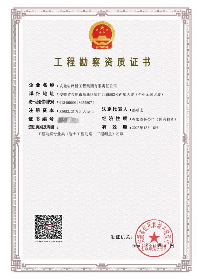 今年,經(jīng)省住建廳核準,公司獲批工程勘察專業(yè)類(巖土工程勘察、工程測量)兩項乙級資質(zhì),再次實現(xiàn)資質(zhì)范圍拓展新突破,填補了公司在工程勘察領(lǐng)域的資質(zhì)空白。