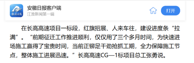 S46長高高速是安徽省高速公路網(wǎng)規(guī)劃“5縱10橫54聯(lián)”中的聯(lián)46線,也是推動(dòng)長三角交通一體化的重要通道。今天,記者走進(jìn)長高高速01標(biāo)項(xiàng)目施工現(xiàn)場,實(shí)地了解項(xiàng)目進(jìn)展情況。